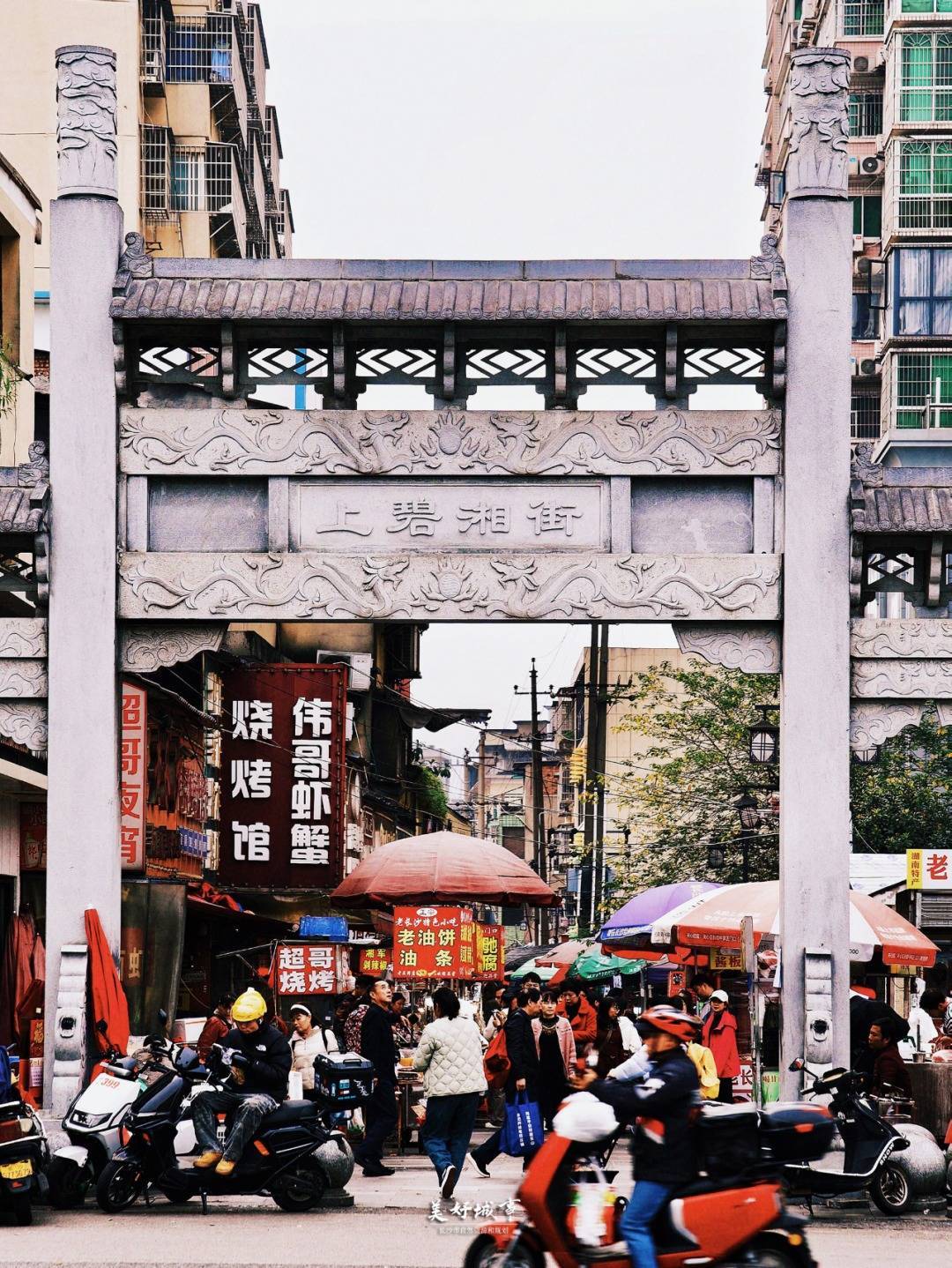 碧湘街的记忆牌。摄影@曹宇旋登上杜甫江阁往下看,碧湘街像片浸在湘江里的柳叶,嵌在老城西南角。上碧湘街从黄兴南路伸到书院路,三百米挤着上百个摊子;下碧湘街从书院路弯到楚湘街,尽头就是杜甫泊舟的江滩。